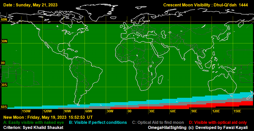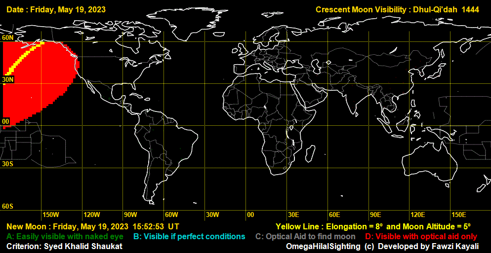 Hilal of ZulQad was NOT Sighted at anyplace in Mainland USA on the 29th of Shawwal - Friday, May19, 2023.