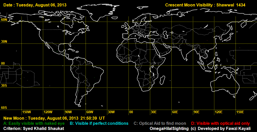 - Seen: Makkah Calendar website (http://www.makkahcalendar.org/en/eid-al-fitr-2013.php) provided a photograph: