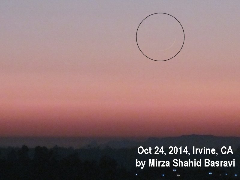 I tried to sight the hilal today October 24, 2014 from 6:10-6:30 PST but was unsuccessful. The conditions were perfect to sight the hilal. My uncles in Hawthrone and Rosemead CA also tried with no sighting.