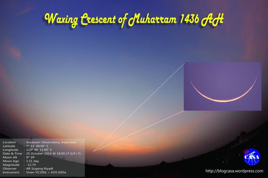 On Saturday, 25th October, 2014, we were about 80 students from CASA (Club Astronomi Santri Assalaam) Surakarta Indonesia tried to see the crescent of Muharram 1436 AH at Assalaam Observatory at 5.00 pm to 7.00 pm. The new crescent of Muharram 1436 AH was seen. Western horizon sky was partly cloudy.
