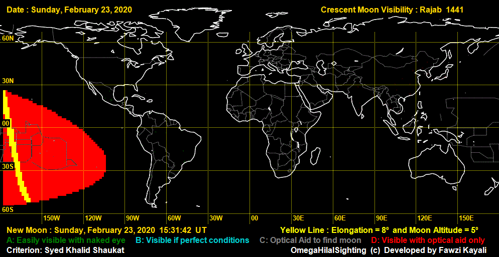 The Moon-Sighting Committee of the Council of Shia Muslim Scholars of North America announces that Tuesday, February 25th, 2020 will be the first day of the month of Rajab, 1441 A.H. for the entire region of North America. This determination is based on the fact that there were verified sightings of the crescent moon by the naked eye at sunset on Monday, February 24th, 2020 from Miami and Orlando, Florida.