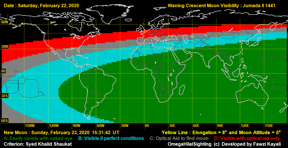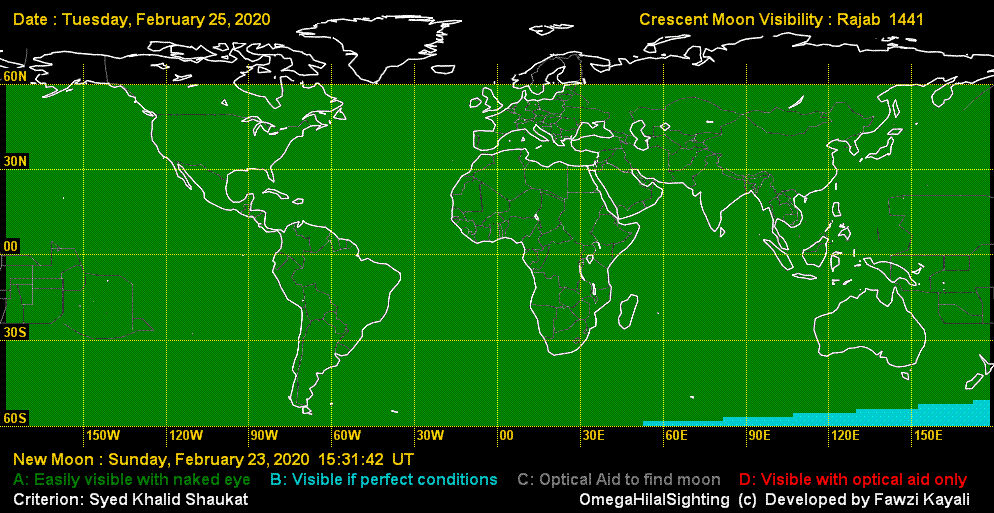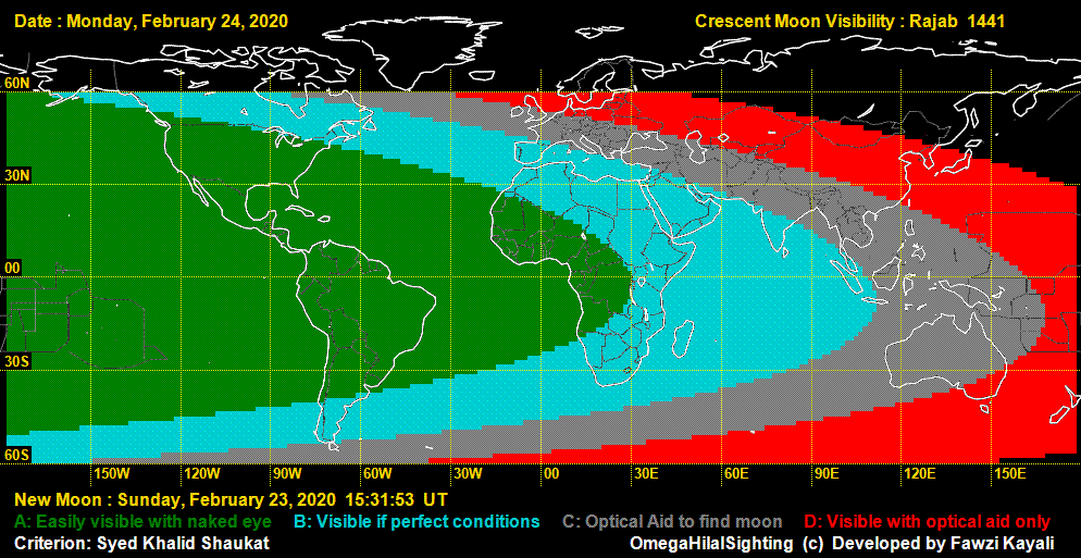 Wed 26 Feb 2020 will be 1st Rajab 1441 Hijri InshAllah due to no reported sightings from anywhere in NZ or Fiji on Mon 24 Feb 2020 (29 Jamada as- Thani).