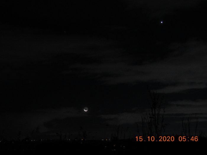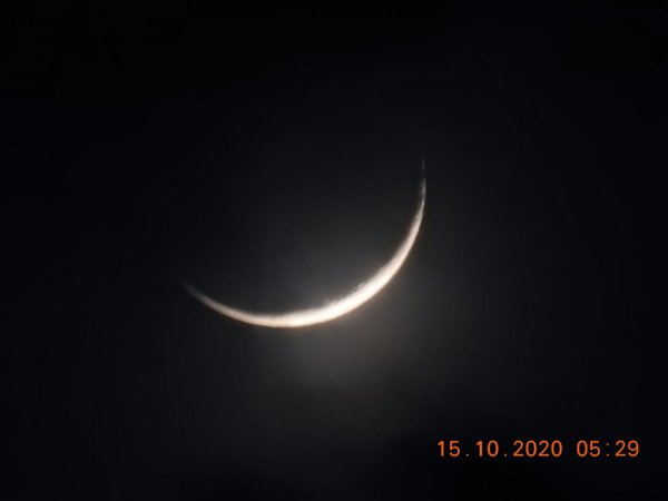 MCW member Irshad Sait N. M of Hijri Committee Of India sent this photo of Urjoonal Qadeem like phase of waning moon taken by Br. Mohamed Hussain today, Thursday, 28th of Safar 1442 (15th October 2020) from Palayamkottai, Tirunelveli (India).