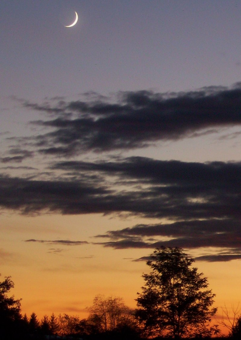 Just wanted to report seeing the Crescent on Saturday Oct 17 around 6:20 pm - 6:35 pm. It was 1-7 clock shape, and to the left of where the Sunset. The sky was clear, and it was not difficult seeing it with the naked eyes.