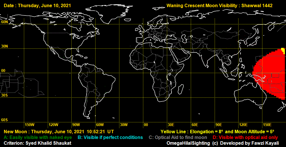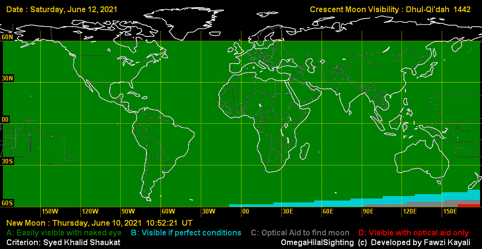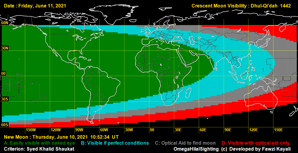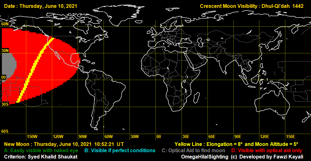 On June 10, Hilal of Ziqad was NOT Sighted anywhere in N America on the 29th of Shawwal 1441H. As such the 1st day of Ziqad will be on Saturday, June 12, 2021 in North America.