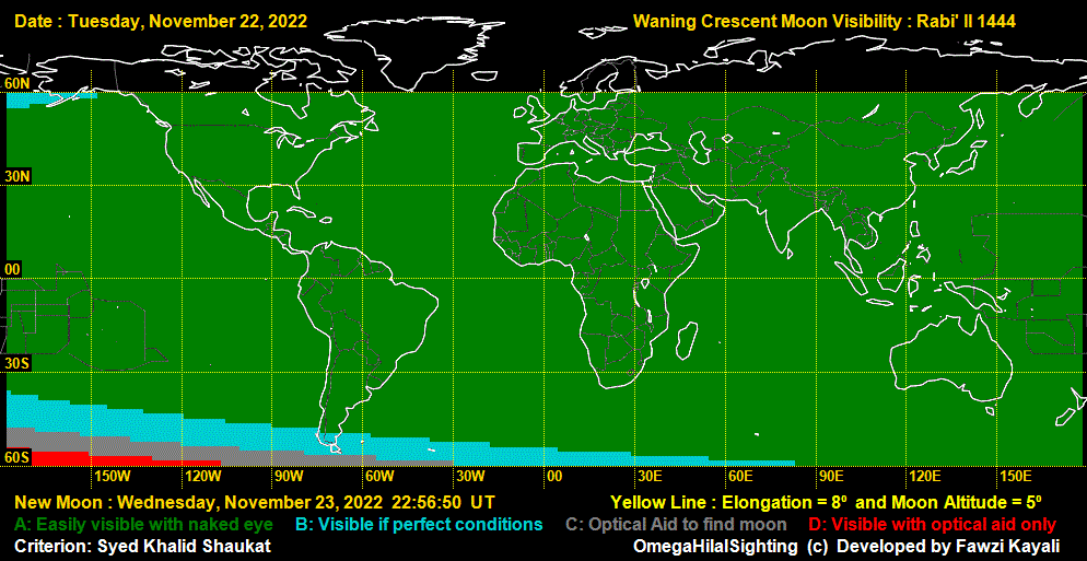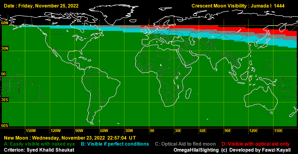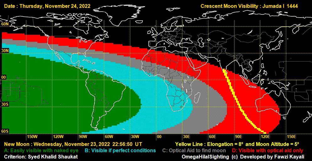 The Moon-Sighting Committee of the Council of Shia Muslim Scholars of North America announces that Saturday, November 26th, 2022 will be the first day of the month of Jumada al-Ula, 1444 A.H. for the entire region of North America. This determination is based on the fact that there were no verified sightings of the crescent moon by the naked eye at sunset on Thursday, November 24th, 2022 in any region of North America. Therefore, Friday, November 25th, 2022 will be the last day of Rabi al-Akhir, 1444 A.H.