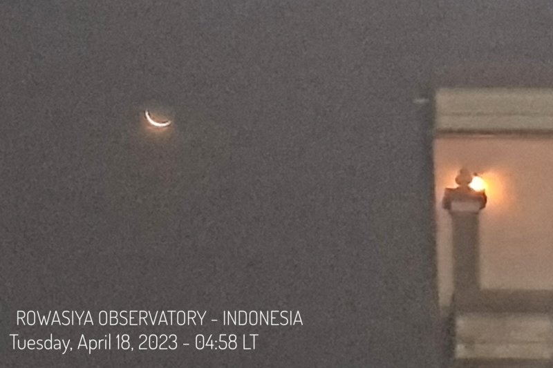MCW member AR Sugeng Riyadi stated: The old crescent of Ramadhan 1444 AH was seen on Tuesday, April 18, 2023 after praying Shubuh from Mosque of Baiturrohim at Ngepringan Serenan Juwiring Klaten Central Java Indonesia.