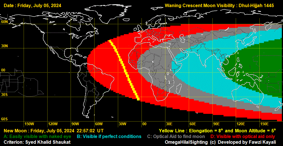 Visibilty of Al urjoonul qadeem of Dhul-Hijjah 1445: July 5 & July 4, 2024