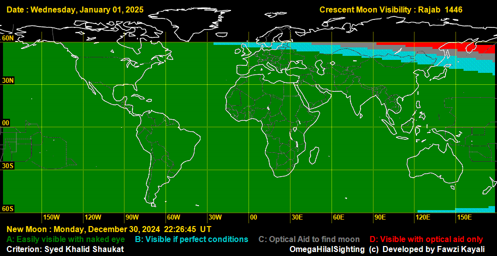 The earliest reported sighting of the new crescent was on ......... from ...................