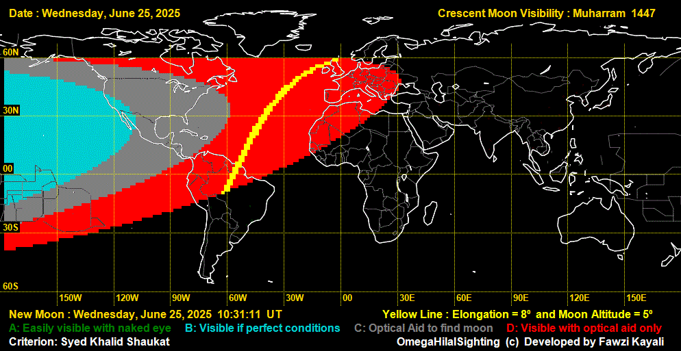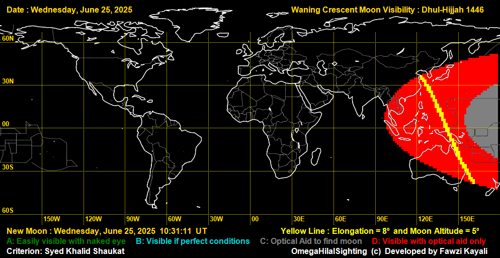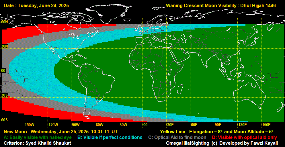 Visibilty of Al urjoonul qadeem of Dhul-Hijjah 1446: June 25 & June 24, 2025