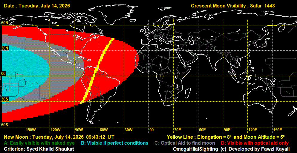 The Astronomical New Moon (conjunction) is on July 14, 2026 at 9:45 UT.