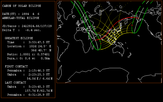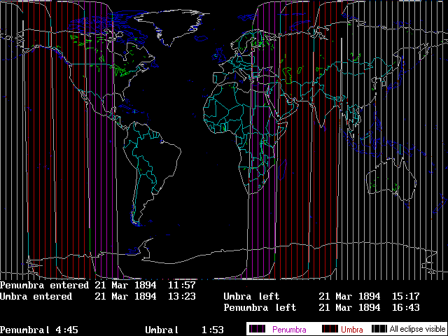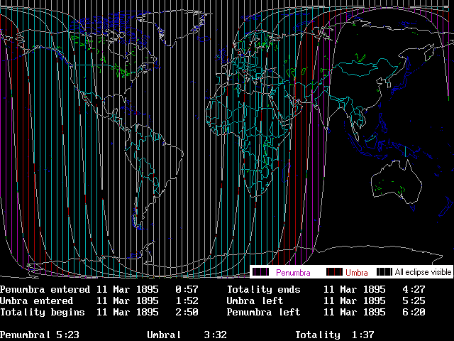 | Solar | March 26, 1895 CE | Ramadan 28, 1312 AH | Starts 14:08 Max. 15:40 Ends 17:10 | Solar Eclipse visible in Greenland and England only, not visible in India. |