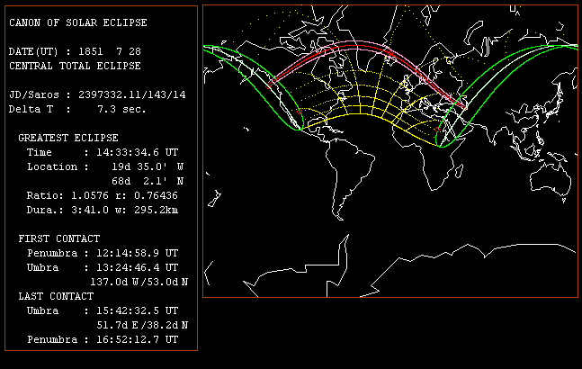 calculations, using Jean Meeus's Algorithm, performed in 1998 By Khalid Shaukat for the 3 pairs of eclipses in the 45 years mentioned above are reproduced for the readers' convenience in the